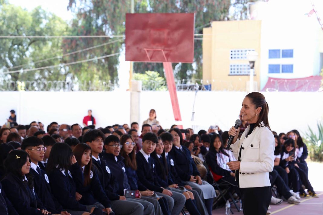 “Estoy empeñada, en que todas y todos los que salen de la secundaria, vayan directito a la preparatoria, y que, si salen de la preparatoria y quieren estudiar la universidad, vayan directito a la universidad o al tecnológico», declaró Sheinbaum.