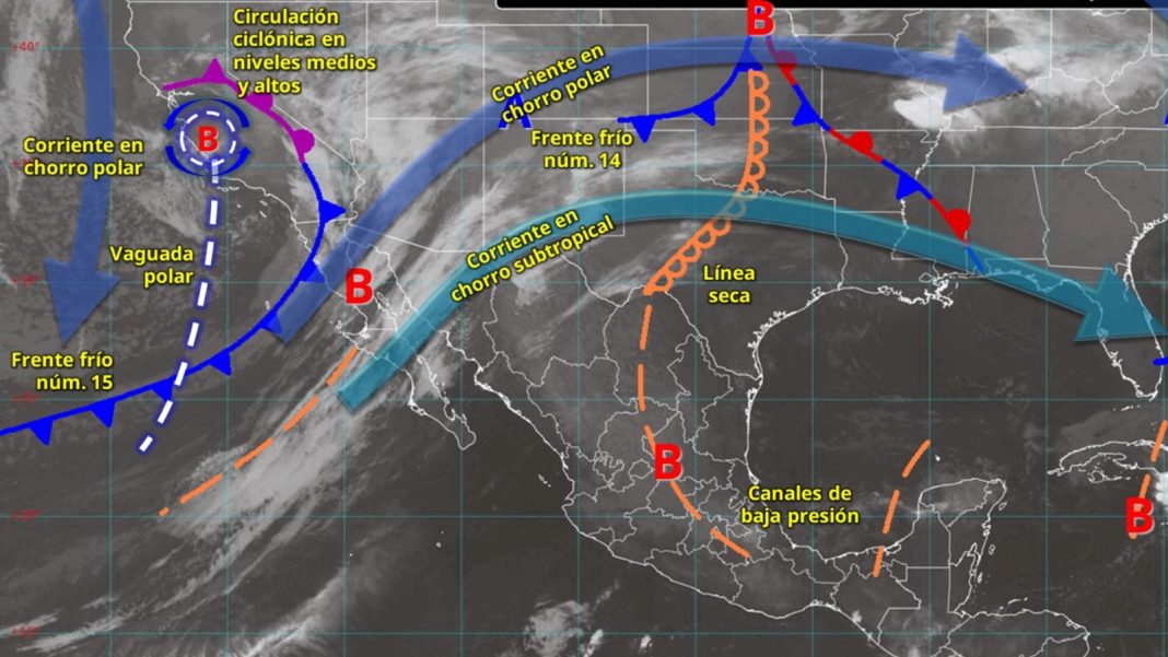 Según el pronóstico, el frente frío interactuará con corrientes en chorro polar y subtropical, una vaguada polar, circulación ciclónica en niveles medios y altos, un canal de baja presión y humedad proveniente del Pacífico. Esta combinación generará mañanas frías y tardes templadas a cálidas, con heladas en regiones serranas.